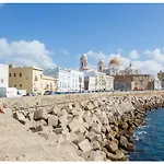 Terraza-Caleta Beach Home By Cadiz4Rentals met een oppervlakte van 100 m^2 ligt in het centrum van Cádiz. Dit strand 2-slaapkamerappartement bevat een terras uitkomend op de stad.